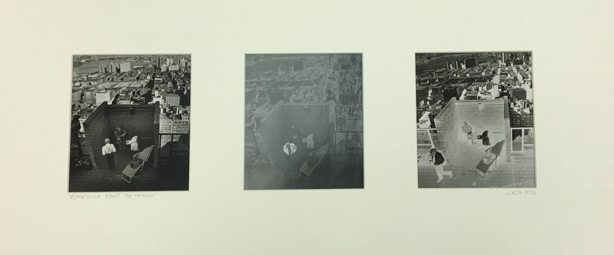 Titled on window mat recto, lower left, in pencil: ““REMINISCING [sic] ABOUT THE FUTURE”;