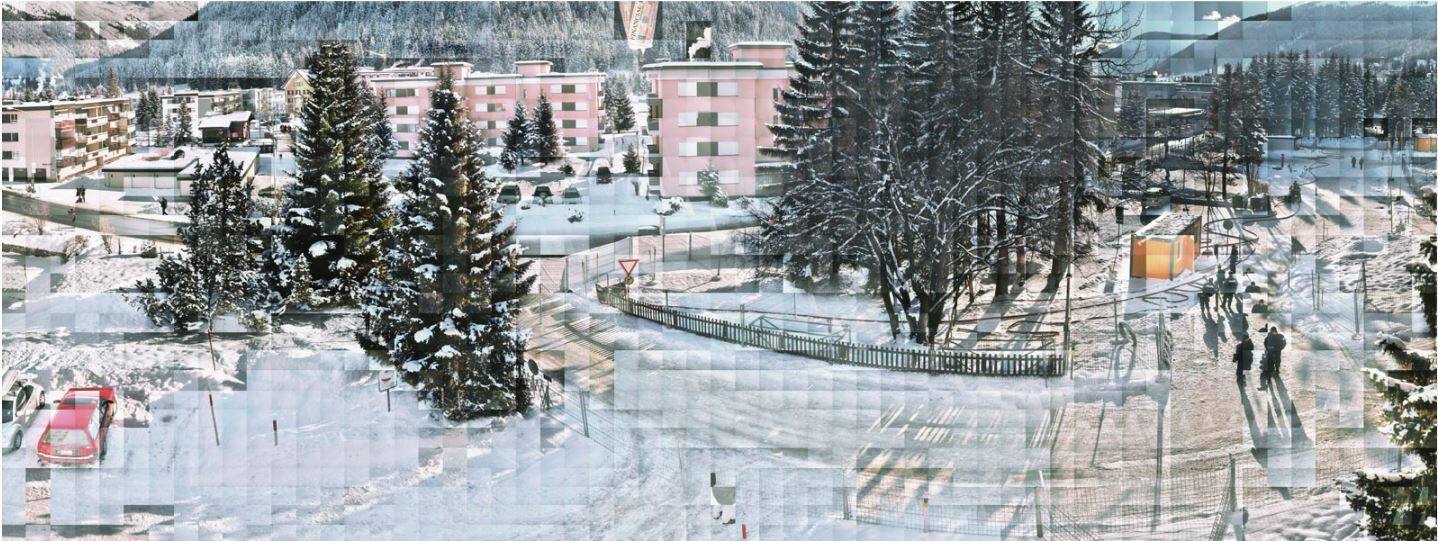 InscribedPrinted on sheet recto, bottom, in black ink: "Jules Spinatsch / TEMPORARY DISCOMFORT IV, PULVER GUT / Anti-World Economic Forum Demonstration, Davos, Switzerland, Y: 782584.65 X: 186126.59 / Discontinuous Panorama B251356, Camera B: Hertistrasse, Talstrasse, Congress-Center South Entry, Kurpark. 1740 single images recorded from 13:56 - 17:15, January 25, 2003"