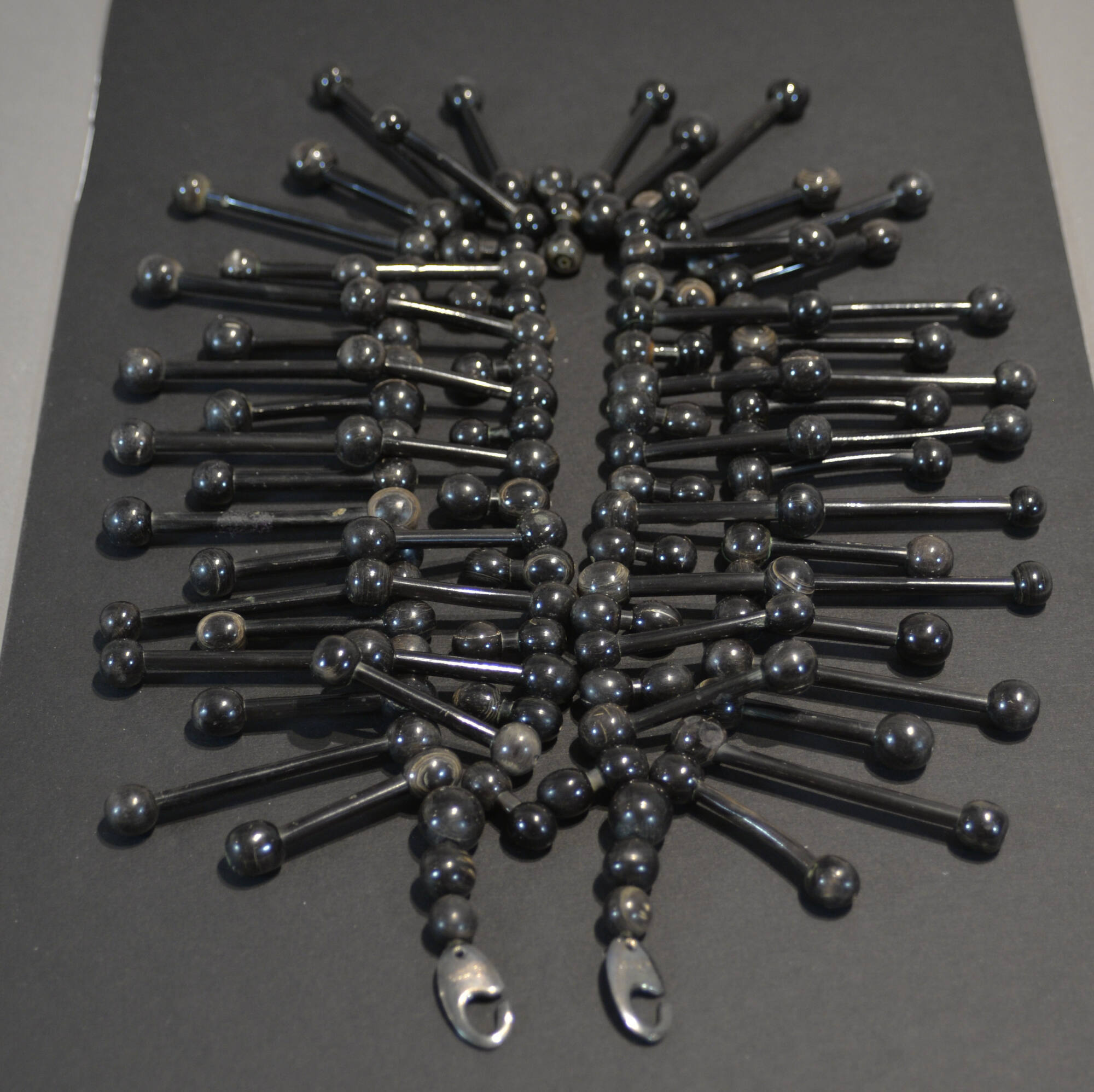 DescriptionNecklace of rods tipped with spheres (resembling small barbells).