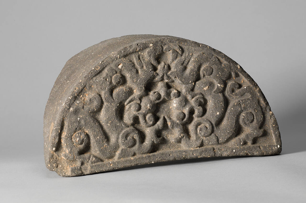 DescriptionOrnamental end is decorated with design in relief of two animals facing each other, each with one claw raised.ProvenanceWith Fu Shu Ta, Peiping (modern-day Beijing), China, by April 4, 1934;