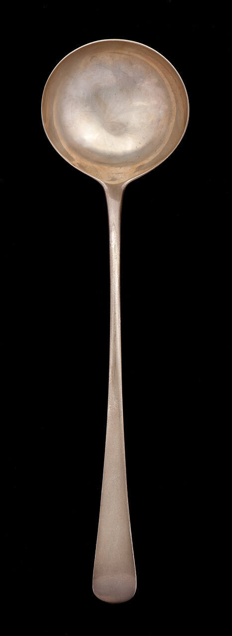 DescriptionDeep bowl with slightly curving stem widening at end. Marks on understem: date H, George III, three castles, lion passant, I.L.