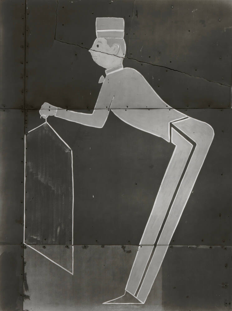 DescriptionImage of an outlined painting depicting a bellhop in profile holding a garment on a hanger.ProvenanceThe Hall Family Foundation, Kansas City, MO, 2018;