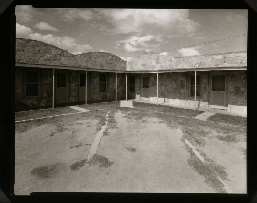 InscribedTitled, dated, and editioned on sheet verso, bottom, in pencil: "A PORTION OF THE "WES/TEX" COURTS. TX 290, SHEFFIELD, TX 1975 #1/25"