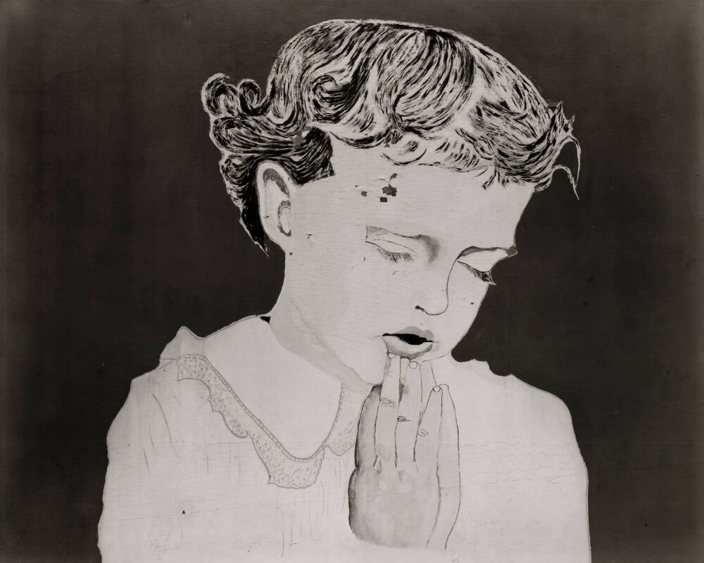 DescriptionImage of a painting of a child with eyes closed, head bowed, and hands clasped together as if praying.Gallery LabelThis image of a young girl, her head bowed in prayer, was the right-hand panel of a Sunday School sign in Eureka Springs, Arkansas.