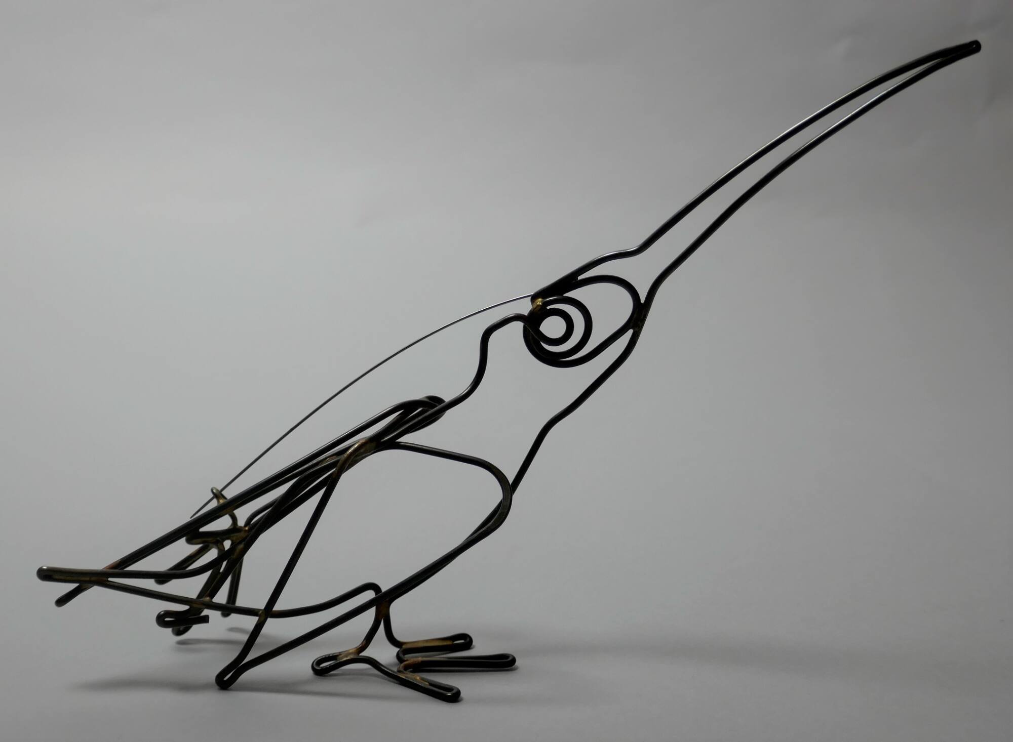 DescriptionAn oversized brooch in the shape of a bird with an elongated beak, created out of heavy metal wire.ProvenanceMarjorie Schick (1941 2017), Pittsburg, KS;