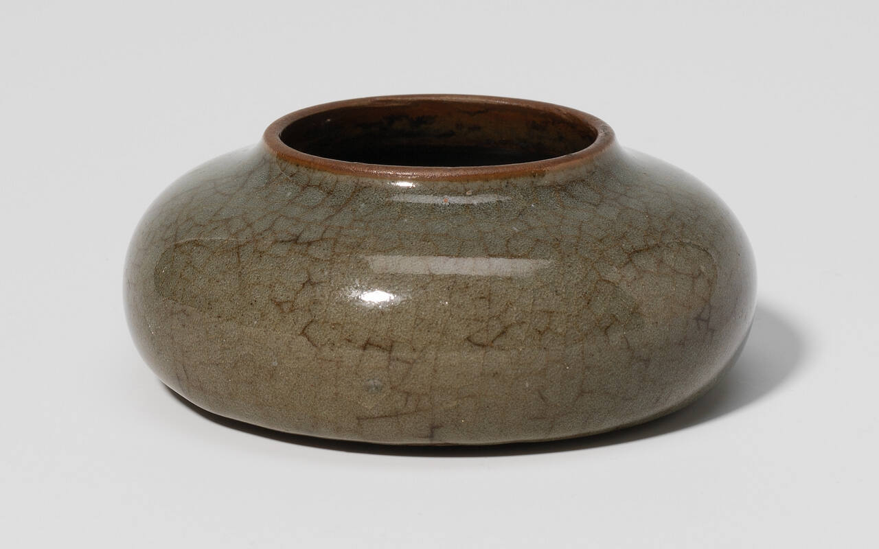 DescriptionSmall squat water pot. flat foot. brown crackle outside, inside chien-like glaze.ProvenanceWith Otto Burchard, Peiping (modern-day Beijing), China, by 1932;