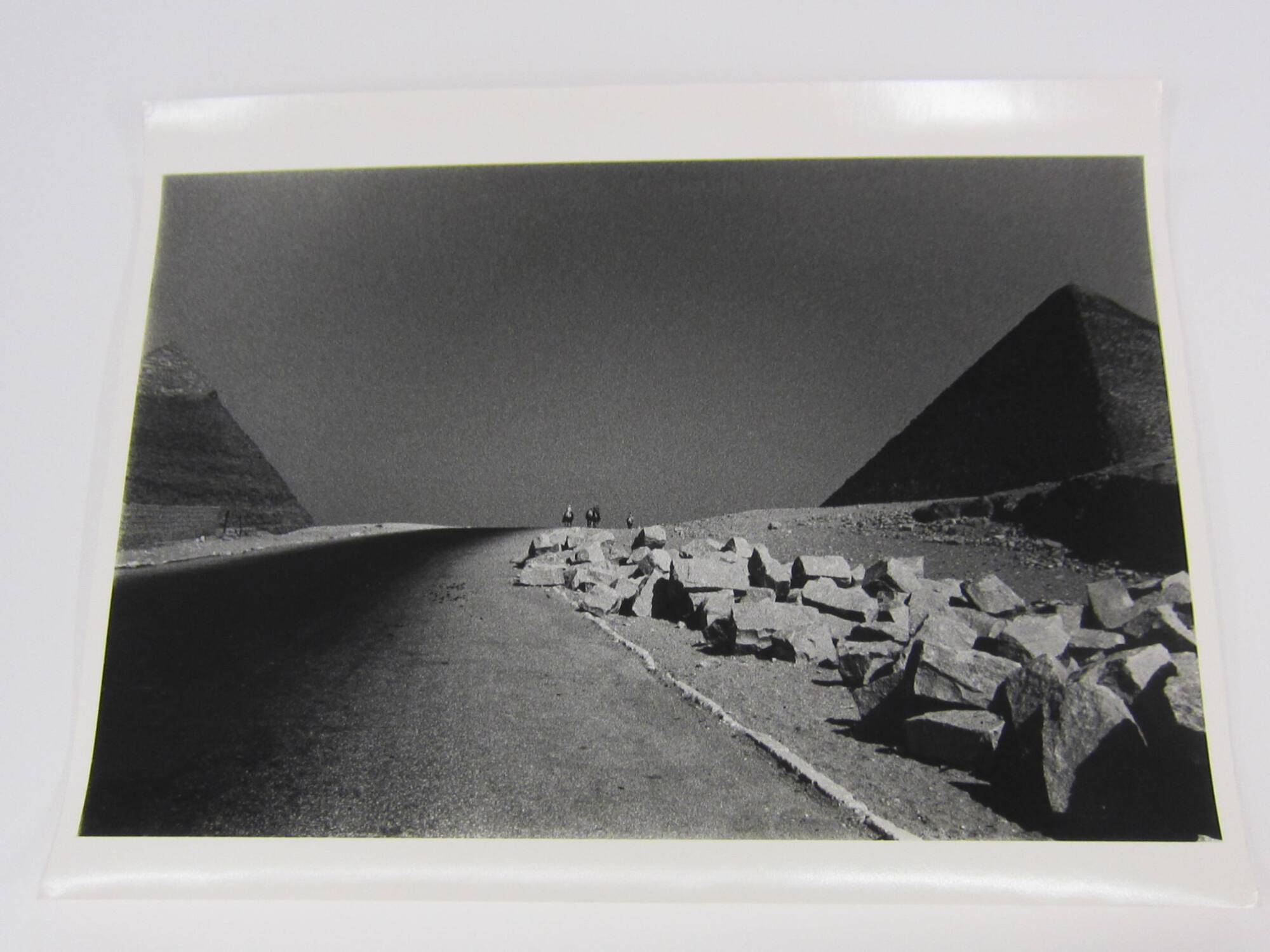 DescriptionImage of a winding paved road with pyramids on either side and large stone blocks along the right. Several people traveling on horse back can been seen at the top of the road against the sky.ProvenanceGeorge Segal, New York, NY;