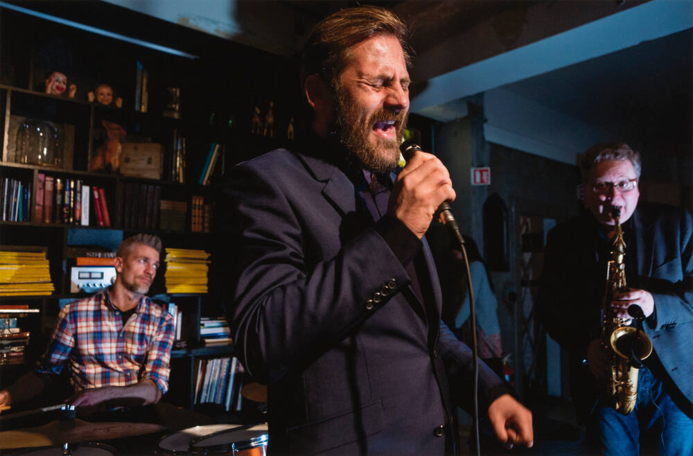 Björn Jörundur Fridbjörnsson, 42, performing with a jazz trio at the Kex Hostel, Reykjavík