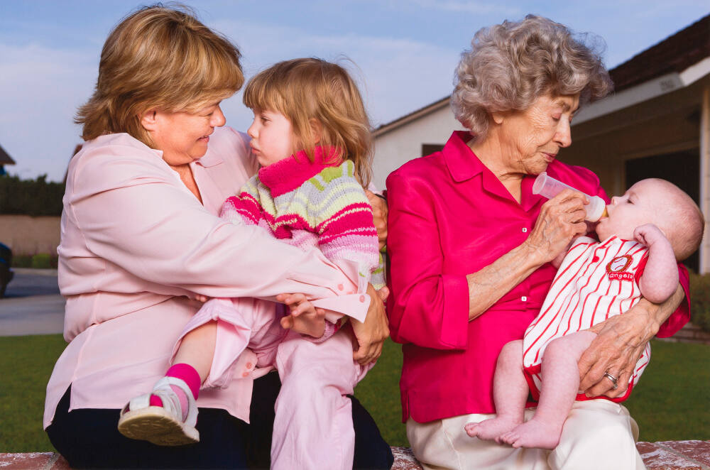Carolyn, 55, holds her three-year-old daughter, Natasja, while Carolyn's mother, Marion, 85, holds Ntasja's three-month-old brother, Alexandre, Orange, California