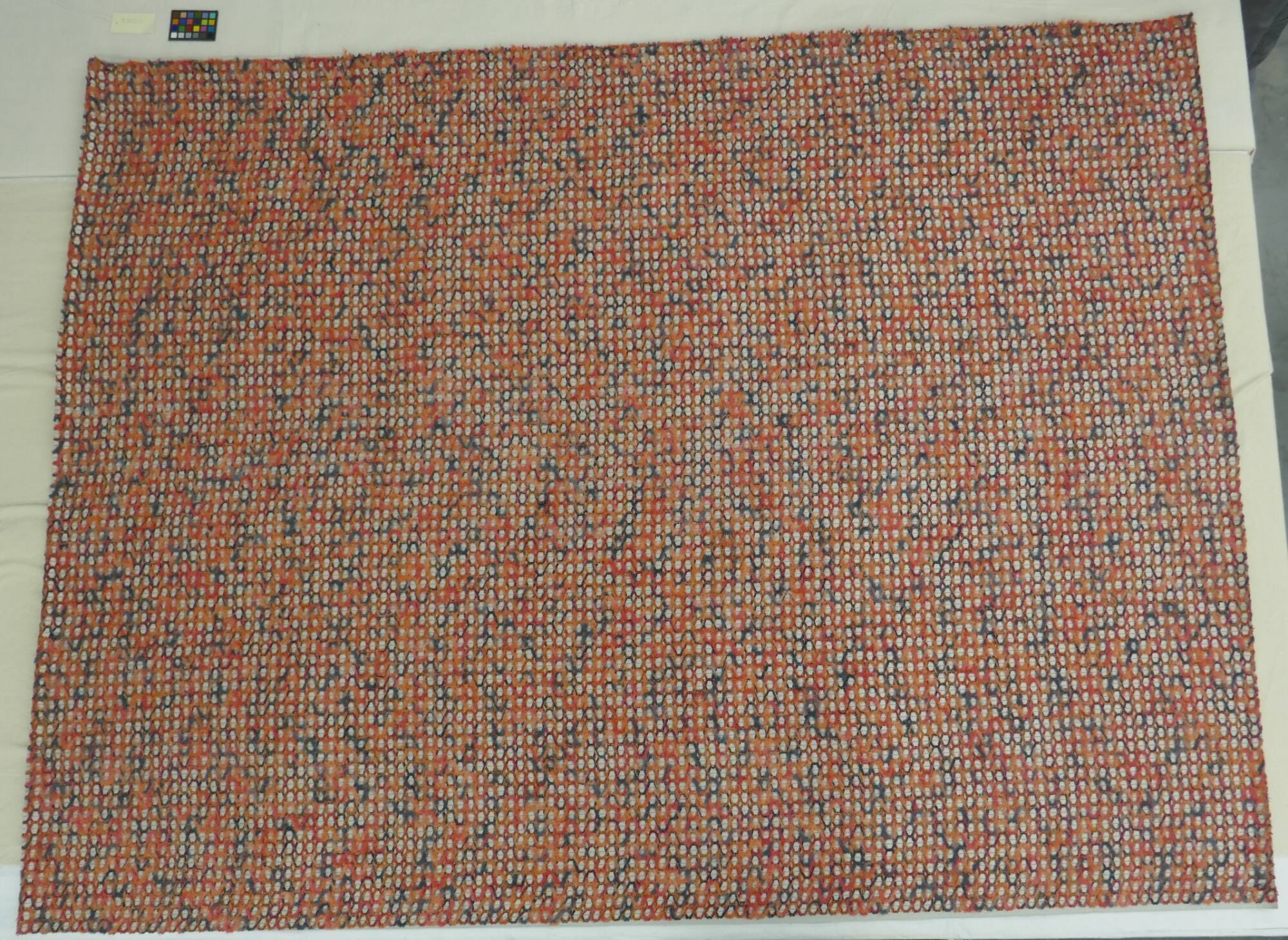 DescriptionTextile inspired by one of Nick Cave's "Soundsuits" with space-dyed, twisted novelty, and chenille yarns combine to create a top layer that pairs with a tafetta-like ground fabric that has a subtle sheen. In the "Rose" colorway.ProvenanceManufactured by KnollTextiles, 2023;