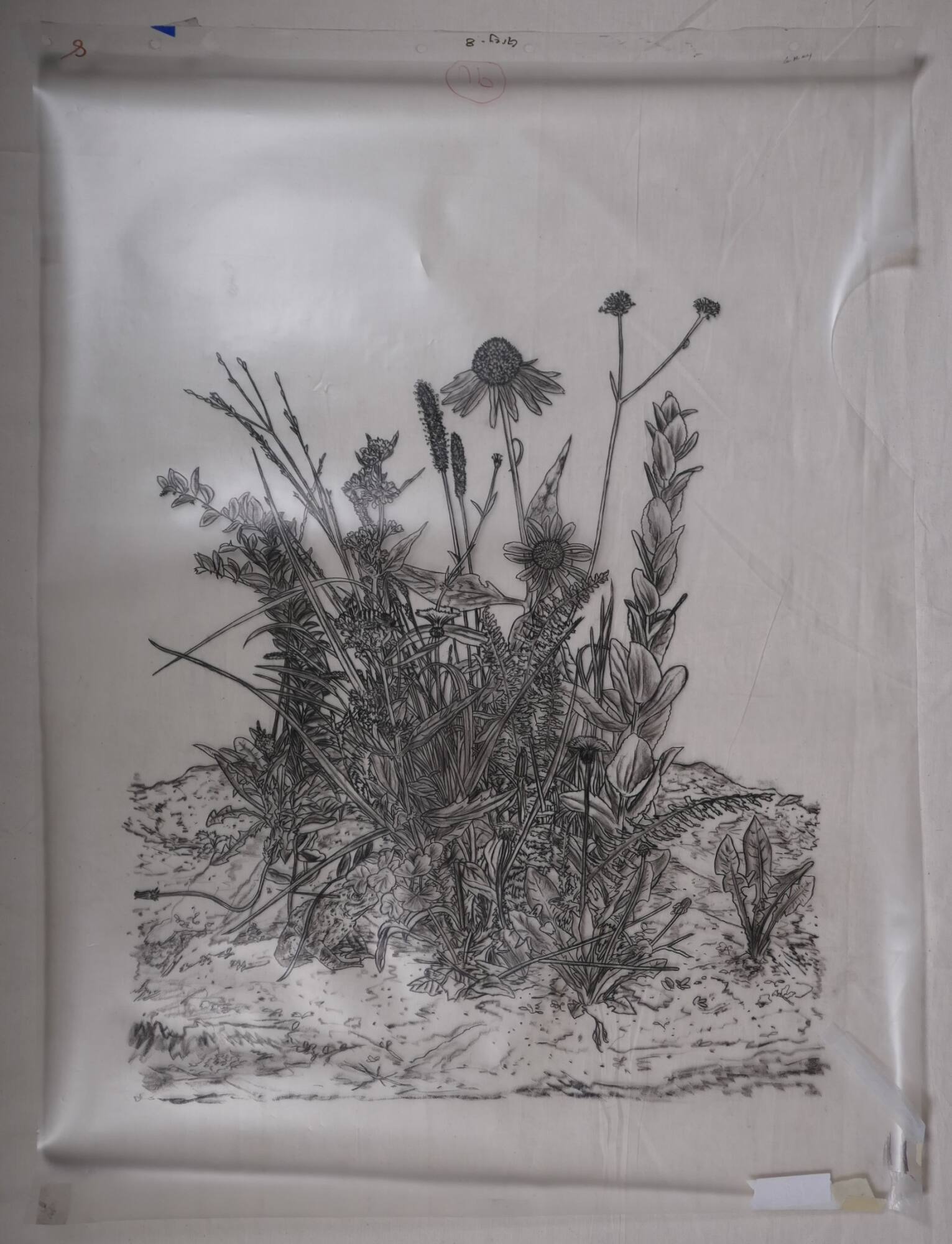 DescriptionMylar preparatory work for depicting the ground and plants, some flowering, growing from it.Provenance
