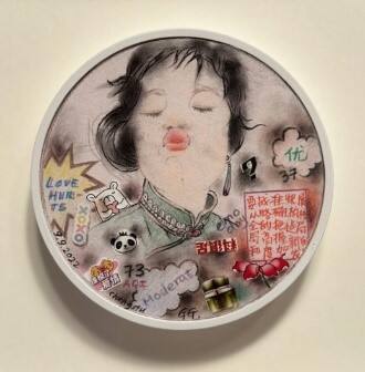 MediumPencil, ink, stickers, and paper cut-out on fine art paper