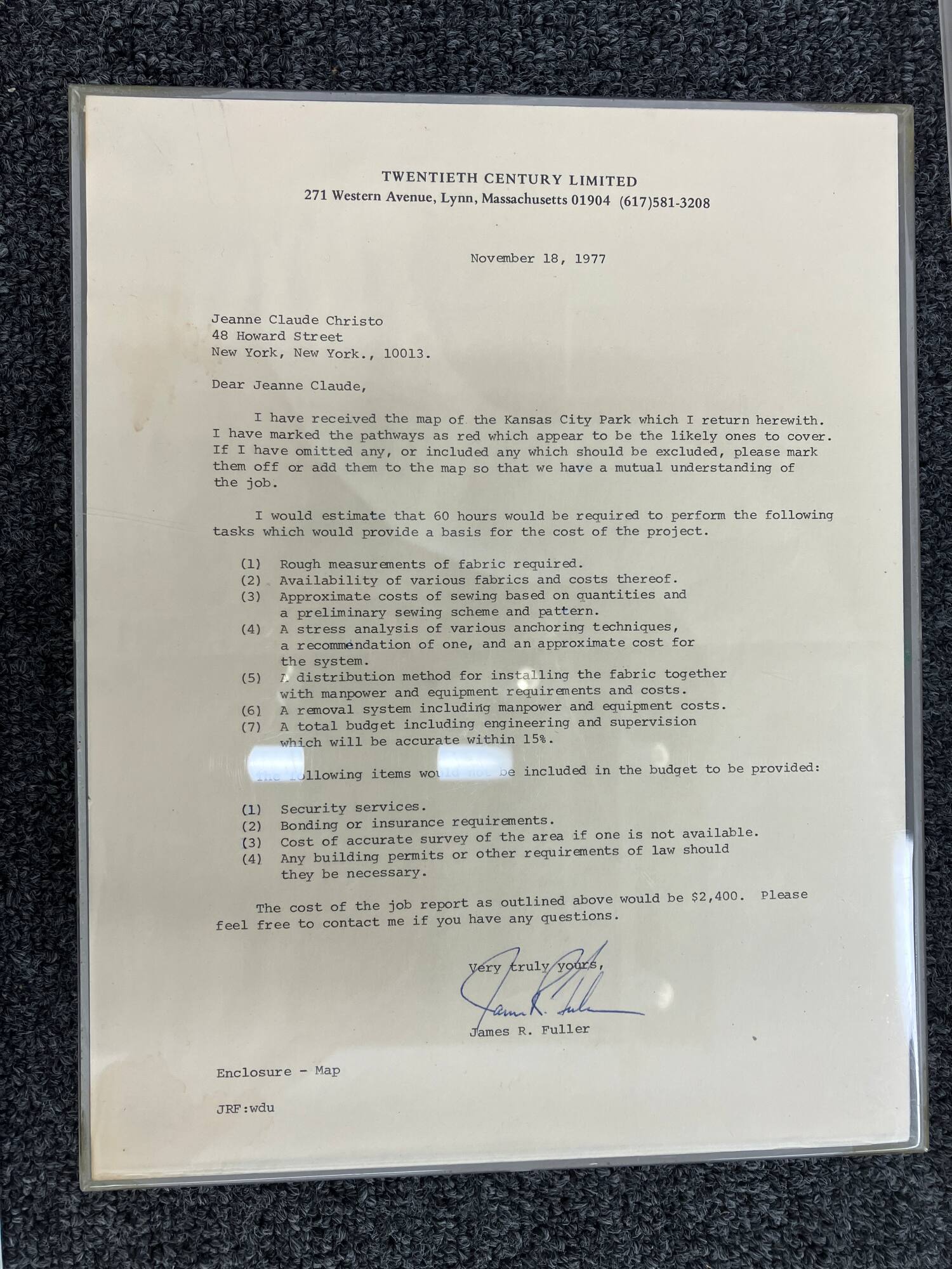Letter from Twentieth Century, Ltd. (James Fuller) to Jeanne-Claude Christo