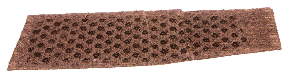 DescriptionFloral and leafage pattern arranged alternately in diagonal rows cut in black velvet.