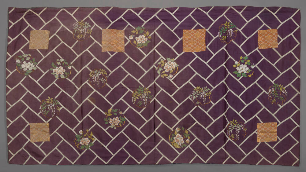 Seven column kesa with cypress fence pattern the floral roundels (peony and wisteria)