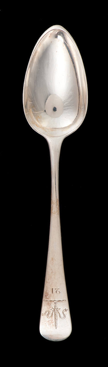 DescriptionOne of a set of 33 silver spoons (from an original set of 70) each individually engraved with a number from 1 to 34 with no. 30 missing. All also engraved with the crest of the City of Chester (snake and sword).