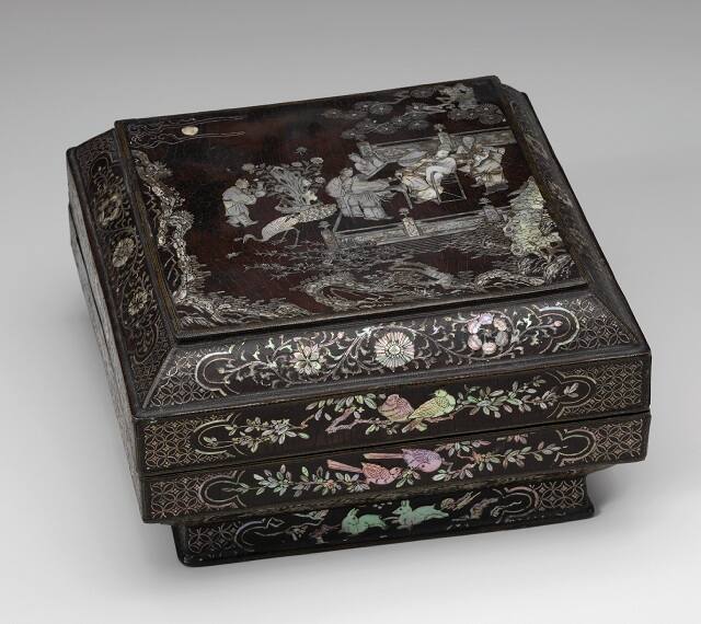 MediumBlack lacquer inlaid with mother-of-pearl