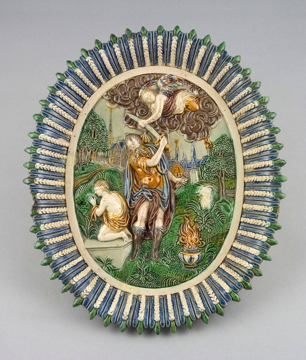 By the 1600s, two traditions dominated French ceramics. The chemist, potter, and religious dissident Bernard Palissy (1510–1590) popularized lead-glazed earthenware. He combined realistic subjects with vibrant, glistening colors. The two dishes on view here demonstrate the long influence of Palissy for nearly a century after his death. Meanwhile, France’s trade with Italy and the Middle East led to the importation and eventual homegrown creation of earthenware fired with glazes made of dissolved tin, known as “faience.” Neither lead-glazed “Palissy” ware nor tin-glazed faience offered the startling translucency of Asian porcelains.