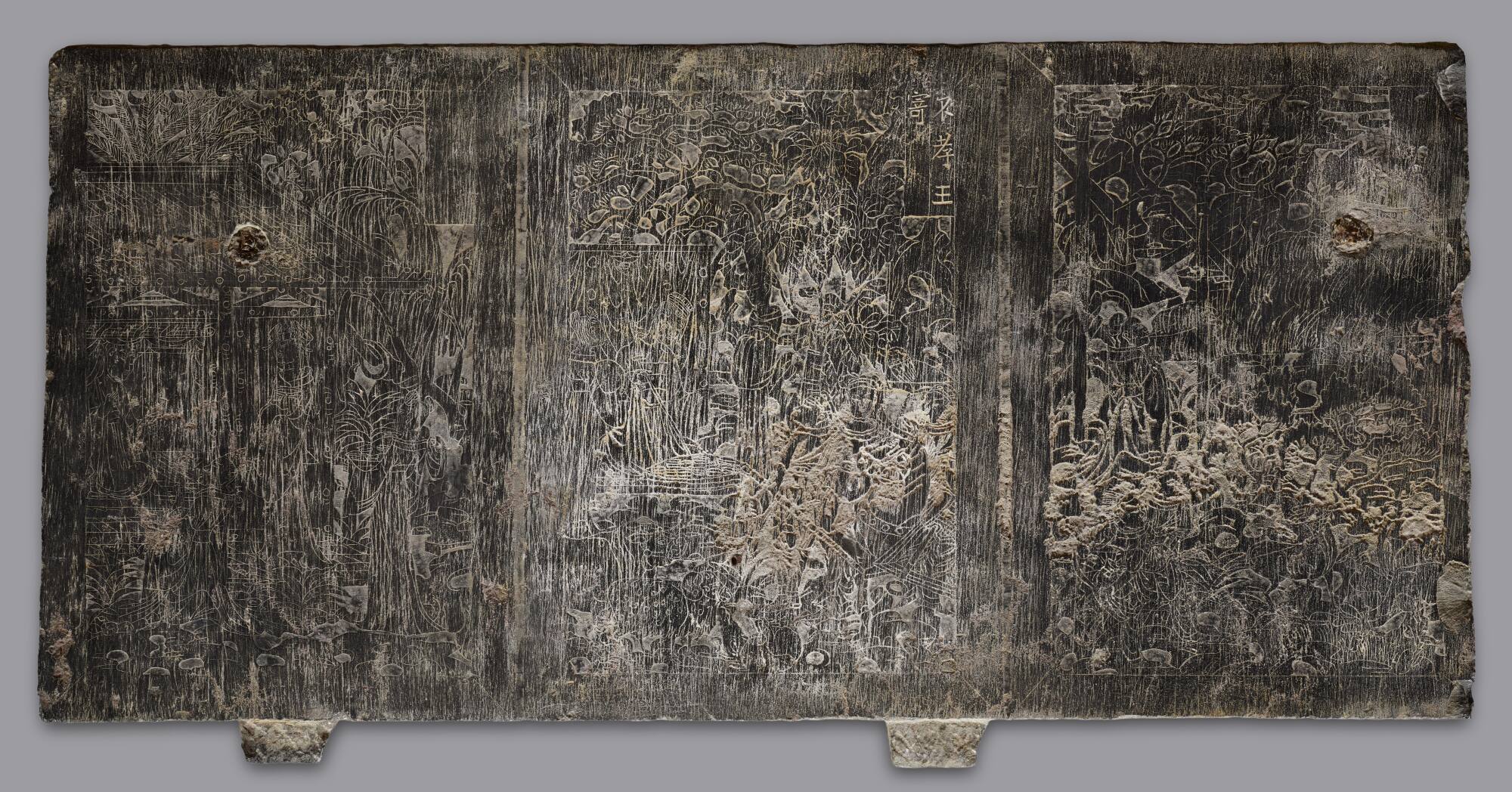 DescriptionEach stone engraved with three scenes of filial piety on one side and three sections with two demons on each in reverse.