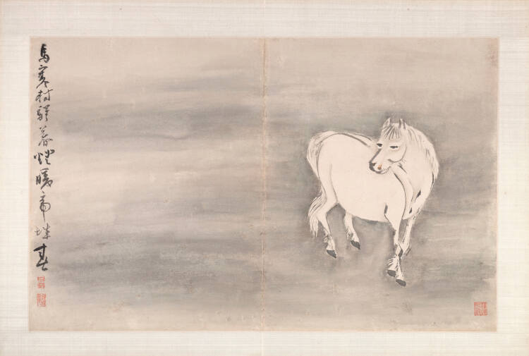 Gao Qipei painted this horse with expressive brushwork, using his fingernails to achieve unique lines. A classic proverb (translated above) suggests that judging the qualities of a fine horse was like judging talent in people. Many scholar-artists like Gao, who both wrote literature and painted images like this one, identified with the solitary horse as a symbol of a noble mind and resilience in the face of adversity.