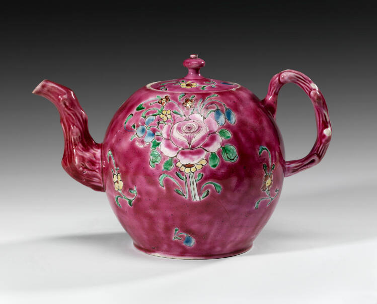 Tea arrived in London from Asia through the Netherlands, as the Dutch were the first to engage in tea trading with China. The 1670s saw only a small amount of tea reaching Europe, but by 1750 the British East India Company had imported 37 million pounds of tea to England. During the 18th century, tea remained a costly and exotic commodity that brought with it a certain mystery inspiring innovative accoutrements and social rituals for its consumption. The Chinese wine pot was a model for the European teapot, and Chinese ceramics also informed the shape of tea caddies. The number and variety of objects in this case speak to the energy and creativity invested in developing fashionable and functional tea implements as well as English patrons' willingness to purchase them.