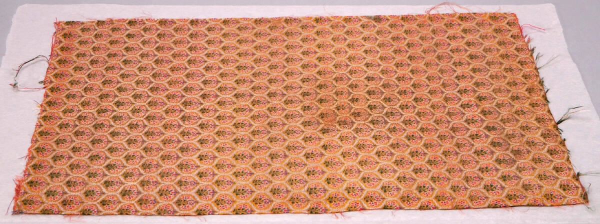 DescriptionGold background, ogive patterns with flower shrub in green, orange, and lavender.Exhibition HistoryNo exhibition history known at this time.