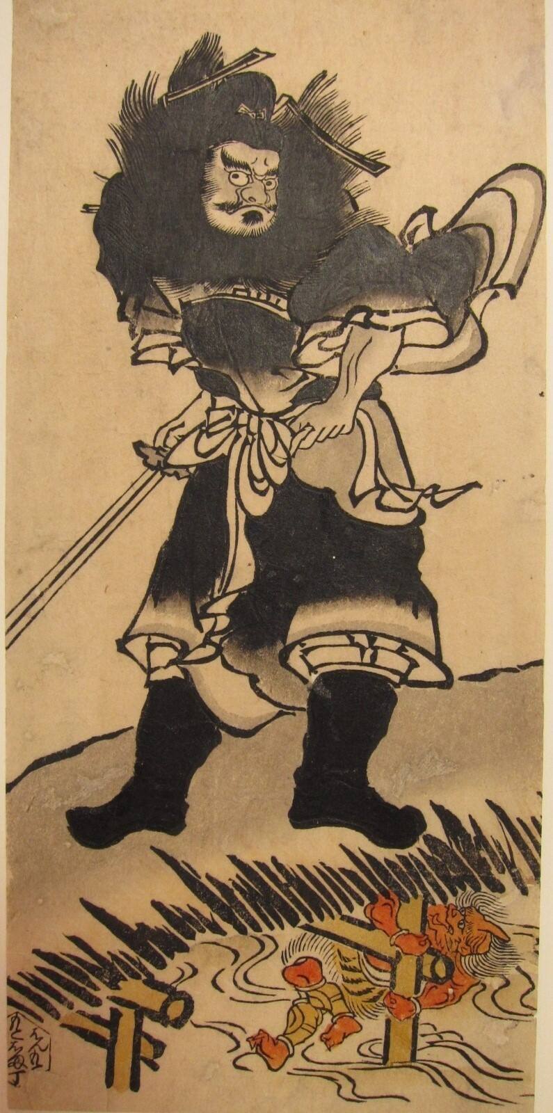 Shoki, The Demon Queller, Standing on a Bridge