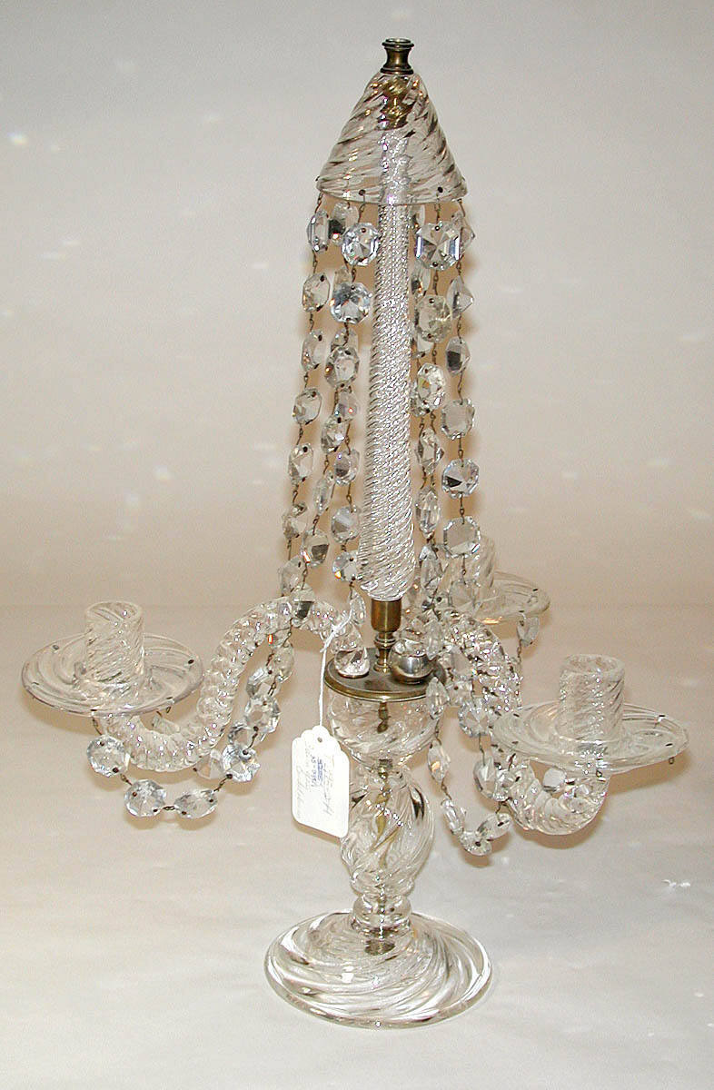 DescriptionCandelabrum with three branches, decorated with festoons of Waterford glass.ProvenanceFurniture and Fine Art Depot Ltd., Islington, London, England, by April 1929;