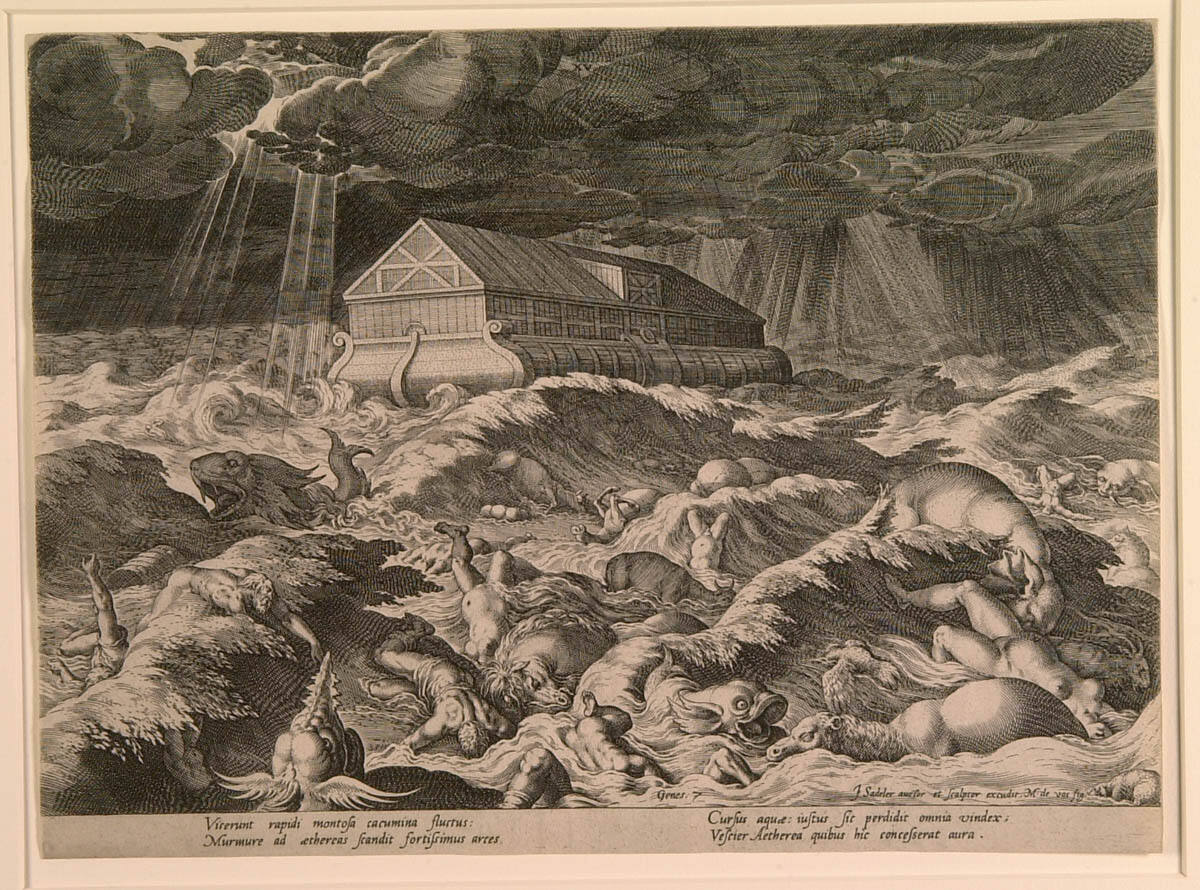 George L. McKenna, Prints, 1460-1995 (Kansas City, MO: Nelson-Atkins Museum of Art, 1996), 289, as Men, Women, And Animals Swept by the Flood, Pl. XV, from Bonorum et Malorum.