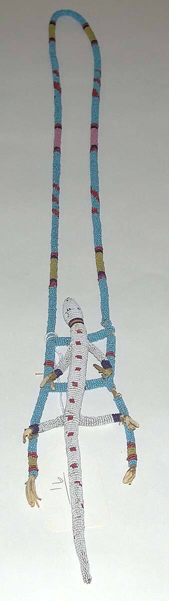 Beaded strand with attached beaded lizard
