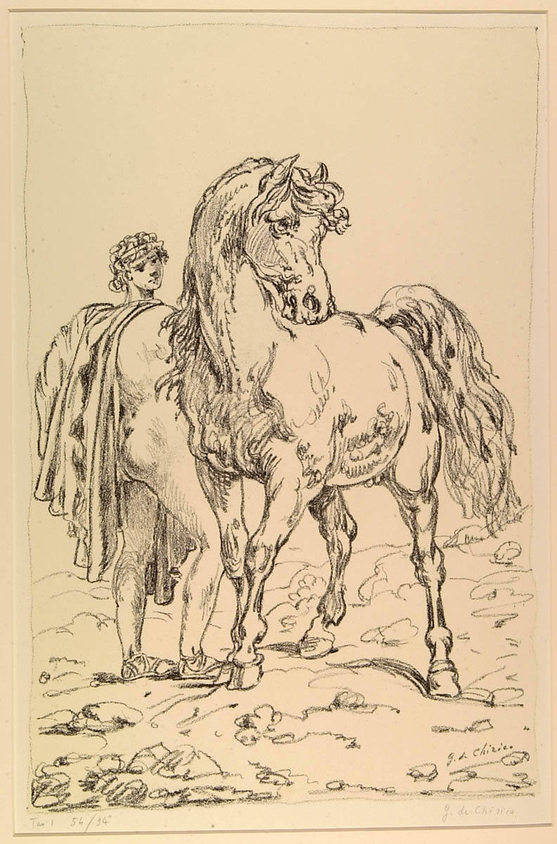 Gallery LabelIn this quick, sketchy rendering, a young man wearing only a cape prepares to mount a massive horse with raised front and rear hooves. The bold arc of the horse’s turned neck and the f lare of its tail reveal a contained energy and readiness to run. The young man is Castor, in Greek mythology one of the twin boys born to the human Leda after she was seduced by the god Zeus. Castor and his brother Pollux were expert horsemen and hunters. They hunted the Calydonian Boar, participated in the destruction of enemy cities and abducted the daughters of Leucippus, who later bore their children. In death, the twins became two bright stars in the constellation Gemini.