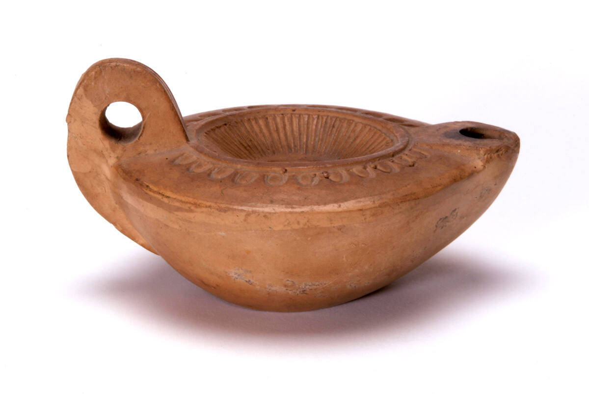 [1] The Nelson-Atkins and the Pacific School of Religion co-sponsored an archaeological expedition at Tell en-Nasbeh, northwest of Jerusalem, in 1932. The expedition was led by Dr. William Frederic Badé. The partage agreement between the institutions specified that if the artistic quality of the found objects was not satisfactory to the Nelson-Atkins, the Pacific School of Religion would transfer objects from its own collection to the Nelson-Atkins to supplement the more recent finds. This object is one of a group seven lamps transferred from the Pacific School of Religion to the Nelson-Atkins as a result of this agreement. William Frederic Badè wrote in a letter to J. C. Nichols, Nelson-Atkins Trustee, July 1, 1933, NAMA Registration Files: “We have included, from our earlier acquisitions, a series of Hellenistic picture lamps from various sites in Lower Egypt. They represent the height of artistic lamp production during the period when Greek art and literature were at their height in Egypt, with Alexandria at the centre.” An inventory list in the NAMA Registration files identifies this piece as from Arsinoe, Fayoum, Egypt.