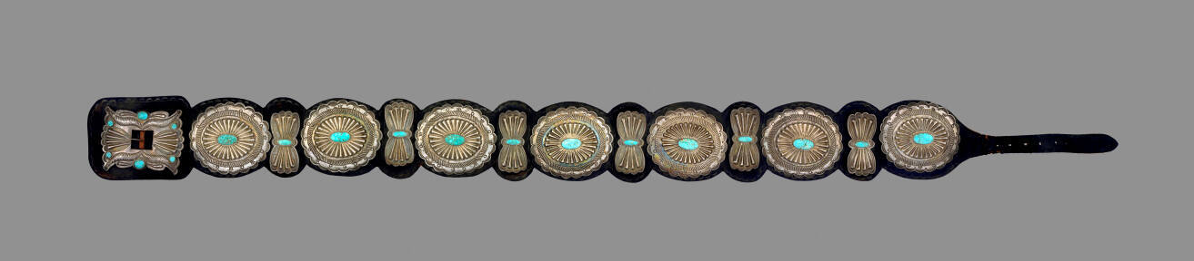 MediumSilver, turquoise, and commercial leather