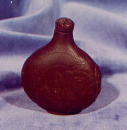 DescriptionFlattened and watch-shaped, carved with two dragons among clouds on one side, reverse with calligraphy.