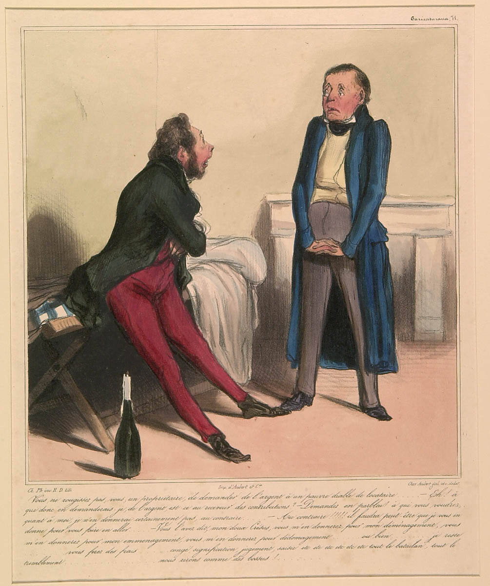 George L. McKenna, Prints, 1460-1995 (Kansas City, MO: Nelson-Atkins Museum of Art, 1996), 295-96, as Caricaturana (Les Cent Robert Macaire): Untitled (You are not ashamed, you, a landlord…).