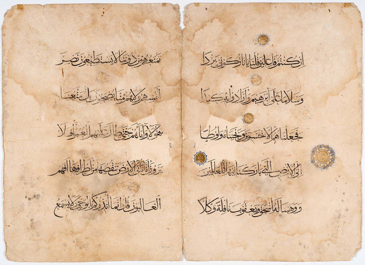 [1] Nelson-Atkins Archives, RG01/01 Director's Office Records, Paul Gardner, box 4, folder 41, 1935 Sickman purchases en route. Before Laurence Sickman assumed his role as Curator of Asian Art in June 1935, he traveled through South Asia and the Middle East on his way from China to the U.S. While in Beirut, Sickman purchased three double pages from a Qur’an from Asad J. Rustum, a professor at the American University of Beirut.