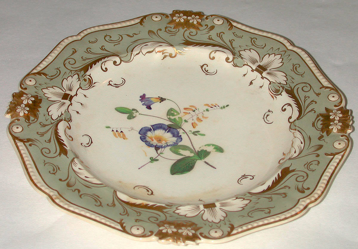 DescriptionA cream colored plate with gray border decorated with gilt flower and leaf design. In the center is a spray of flowers enameled in several colors.ProvenanceWith Boswell & Ward, London, by September 9, 1932 [1];