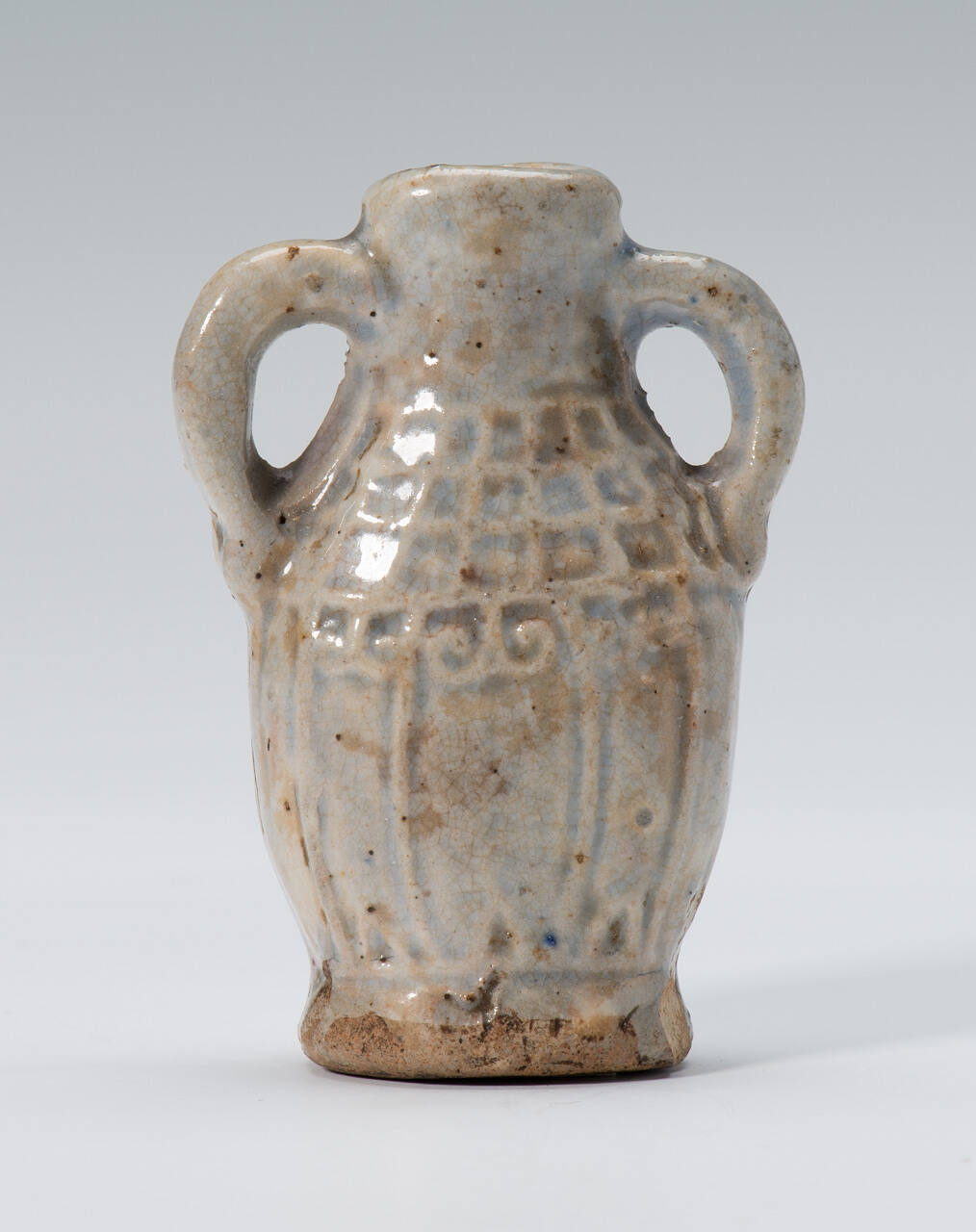 Two-handled Medicine Bottle with Geometric Design