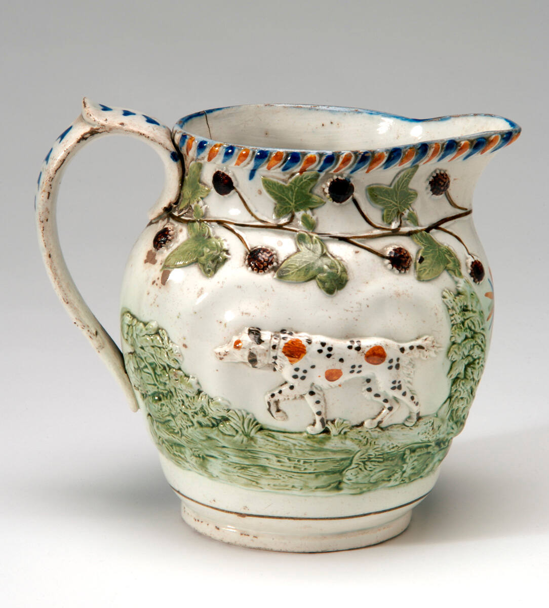 MediumEarthenware (Pratt ware) with lead glaze and enamel