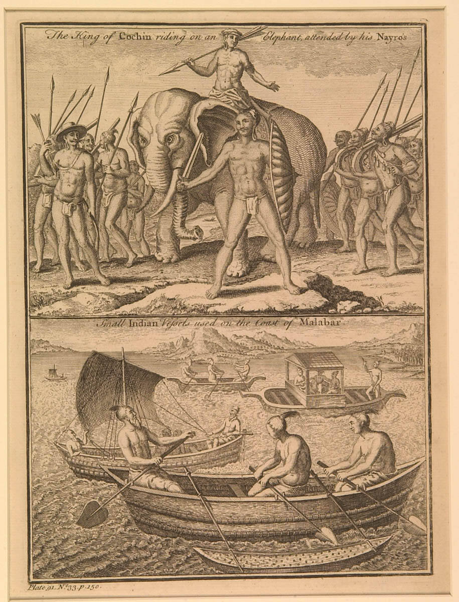 George L. McKenna, Prints, 1460-1995 (Kansas City, MO: Nelson-Atkins Museum of Art, 1996), 285, as The King of Cochin Riding on an Elephant attended by his Nayro's, and Small Indian Vessels used on the Coast of Malabar.