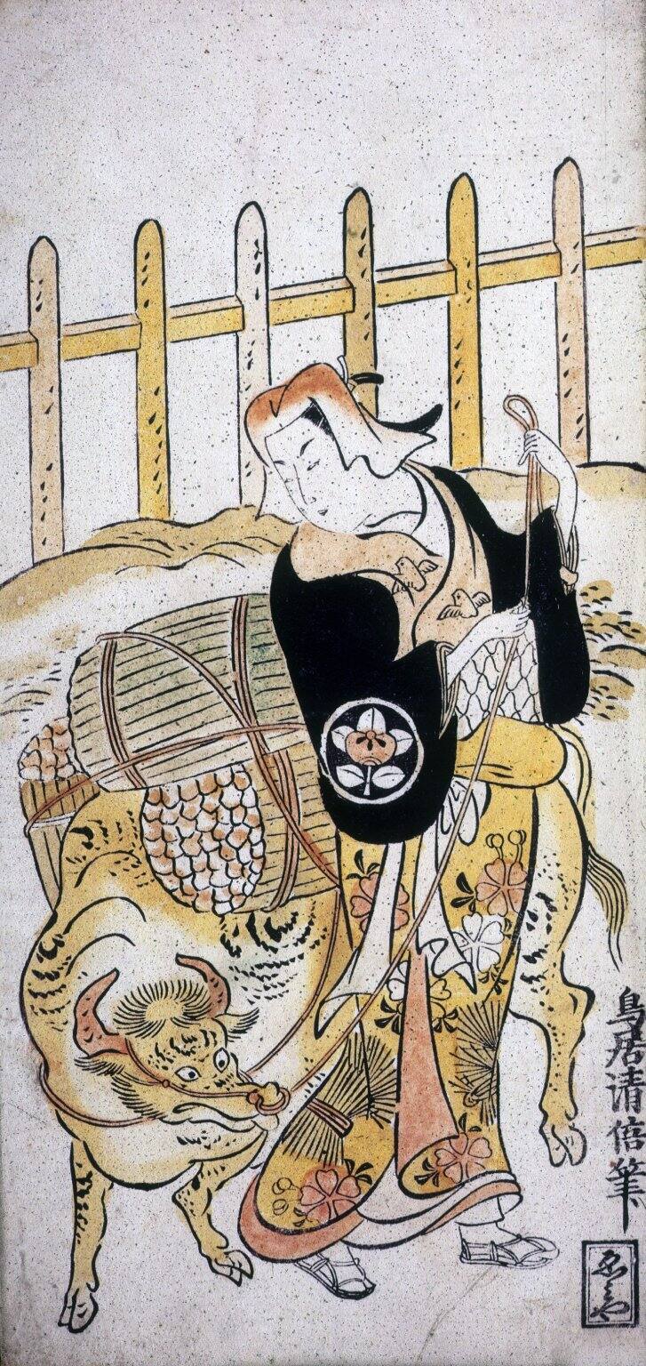 The Actor Ichimura Uzaemon VIII Takenojo as a Girl Leading a Bullock