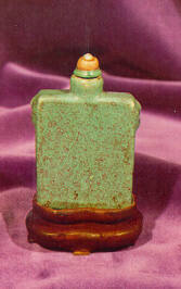 DescriptionRectangular bottle glazed with rubbed ochre color, with animal masks and ring handles on shoulders.