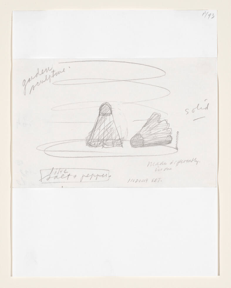 Notebook Page: Salt and Pepper Set of Shuttlecocks as Garden Sculptures