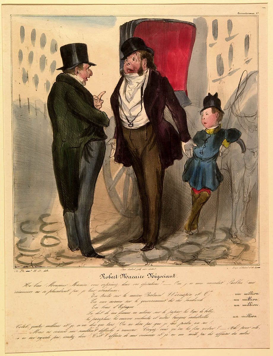 George L. McKenna, Prints, 1460-1995 (Kansas City, MO: Nelson-Atkins Museum of Art, 1996), 295-96, as Caricaturana (Les Cent Robert Macaire): Robert Macaire, Wholesale Merchant.