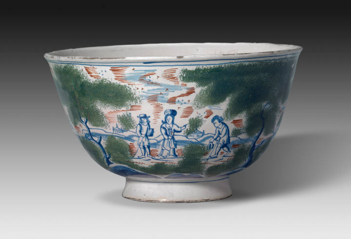 MediumEarthenware with tin glaze and enamel (delftware)