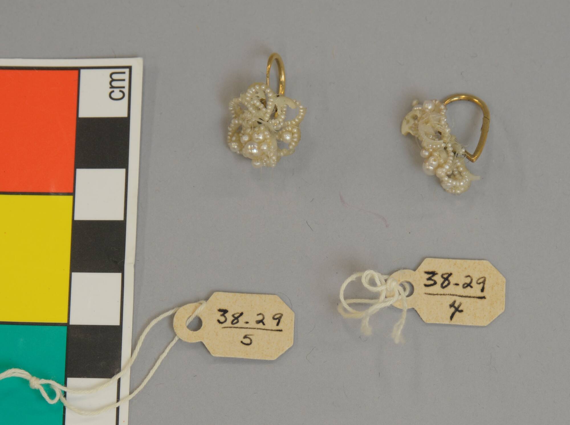 DescriptionOne in a pair of small circular earrings of seed pearls. Made for pierced ears.ProvenanceVirginia Eaton George (1889-1975), Kansas City, MO, by 1938;