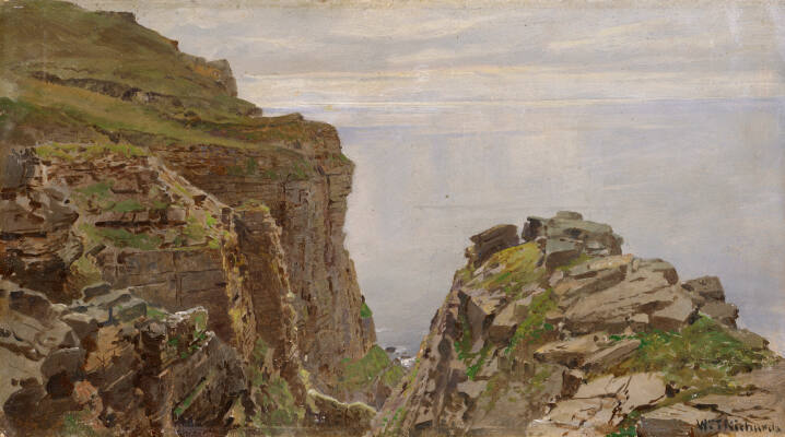 Gallery LabelWilliam Trost Richards, an important American landscape and marine painter, rendered the natural world with great fidelity. He frequently took sketching trips to the Catskill and Adirondack Mountains to gather source material for his art. In the early 1890s, he travelled to the Scottish Isles. There he created small oil sketches that captured the dramatic geological features of the sea cliffs of St. John's Head at Hoy, an island in the Orkneys. Like the two graphite sketches drawn nearly three decades earlier, Richards made the quick oil study on site with the likely intention of using it as a visual aid for a larger, more finished painting to be created in his studio.