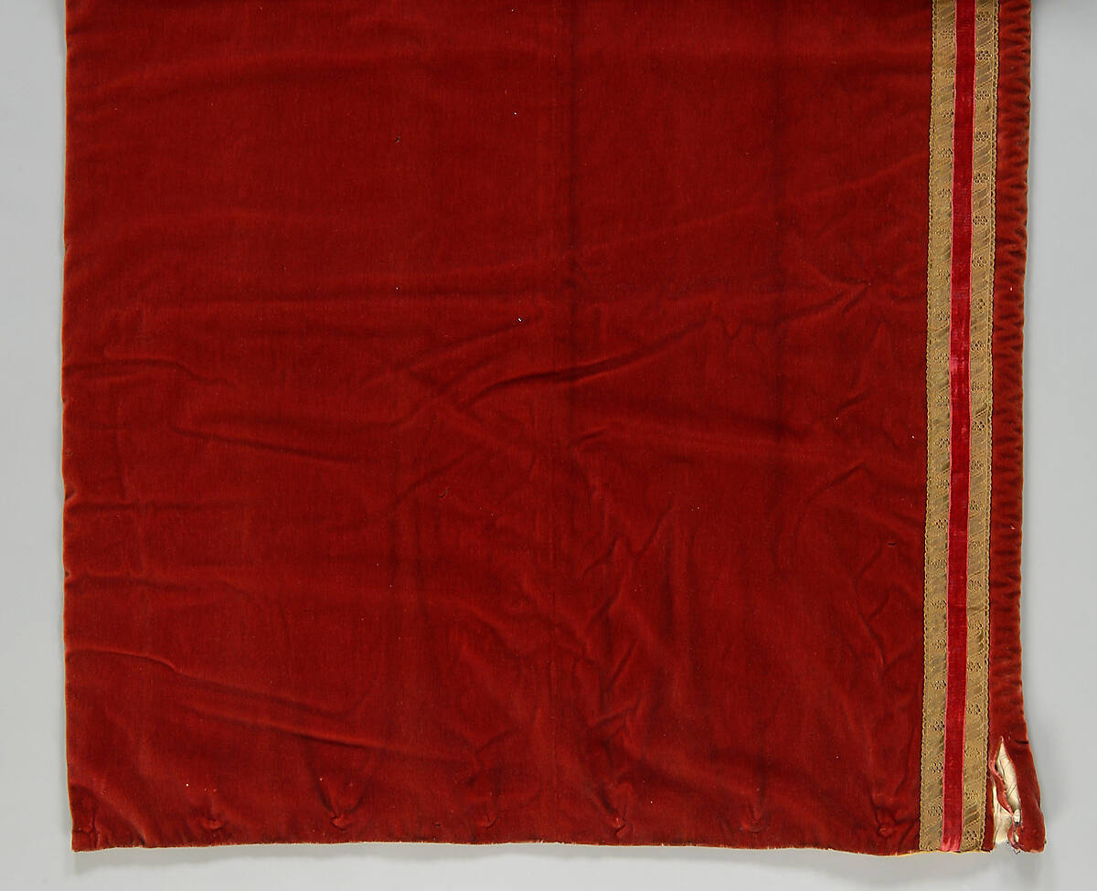 DescriptionTwo pair old rose velvet window hangings. Trimmed with gold braid, lined and innerlined.Provenance