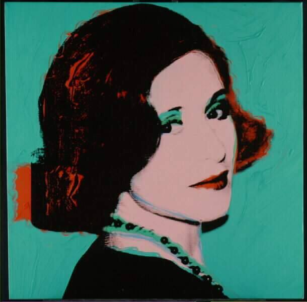 Andy Warhol is best known for his photo-silkscreened paintings of celebrities like Marilyn Monroe and Elvis Presley, but he also painted portraits on commission. The beauty in this painting is Marion Bloch, for whom, with her husband Henry, this building is named. According to Mr. Bloch, the couple engaged Warhol’s services and took a suite in New York’s elegant Pierre Hotel. With daughter Mary Jo nearby, Marion was seated on a chair near the fireplace. The artist arrived, not with paints and brushes, but with a Polaroid instant camera. To their surprise, he photographed Marion against a blank wall in the bedroom, and departed. Back in the studio, Warhol selected one image of Marion, expanded its scale and photo-silkscreened the paintings in various colors on four canvases. Two of these works remain in the Warhol Museum collection, the Blochs gifted one painting to the Nelson-Atkins, and the fourth painting hangs in Bloch's home.