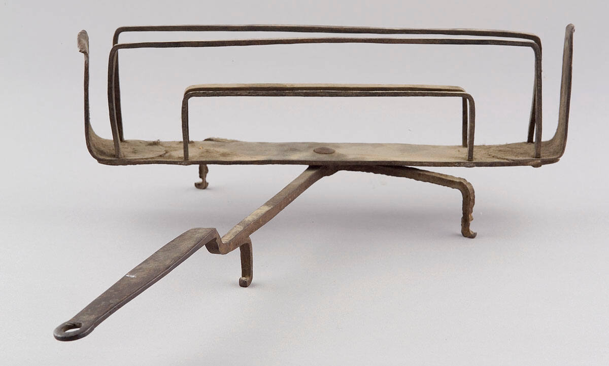 DescriptionRevolving rack for holding bread, on long handle.